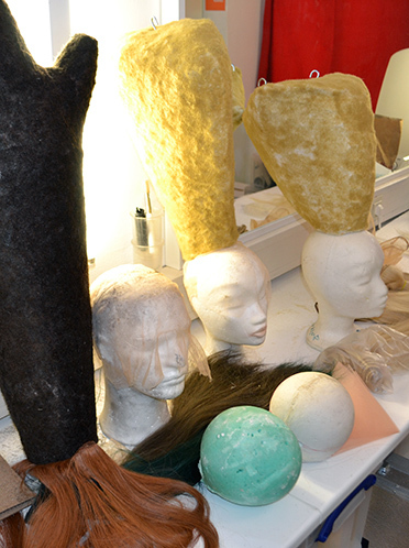 „Zunächst wurde aus Draht der Unterbau für die Grundform gefertigt, mit Baumwollgewebe und Leim überzogen und schließlich in Haarfarbe eingefärbt. Erst dann wurde das von Great Lengths zur Verfügung gestellte Echthaar bearbeitet und die Grundform damit überzogen.“